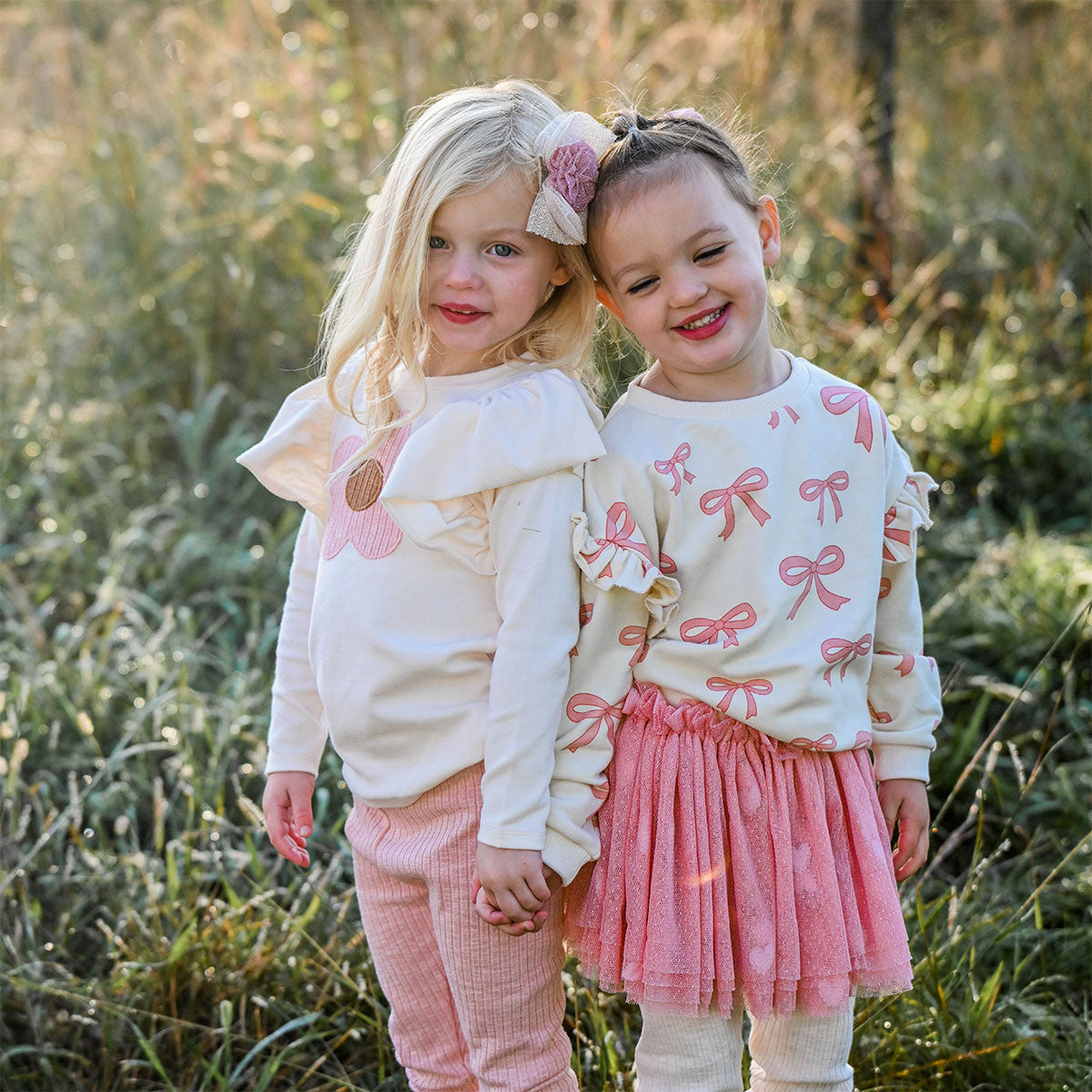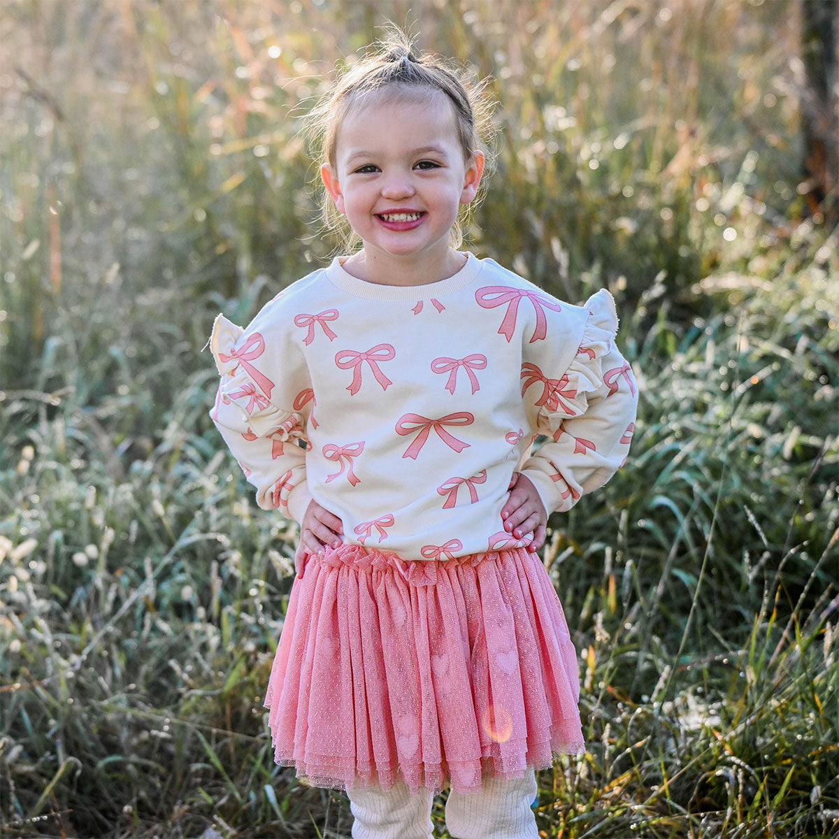 oh baby! Ruffle Slouch Sweatshirt - Pink Bows - Natural