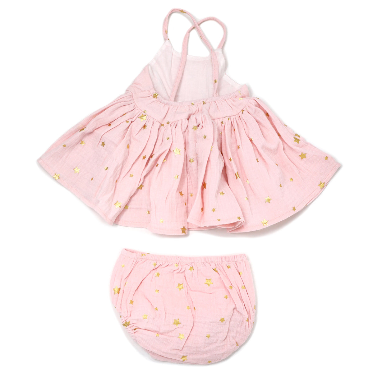 oh baby! Gauze Party Dress - Mini Gold Stars - Pale Pink