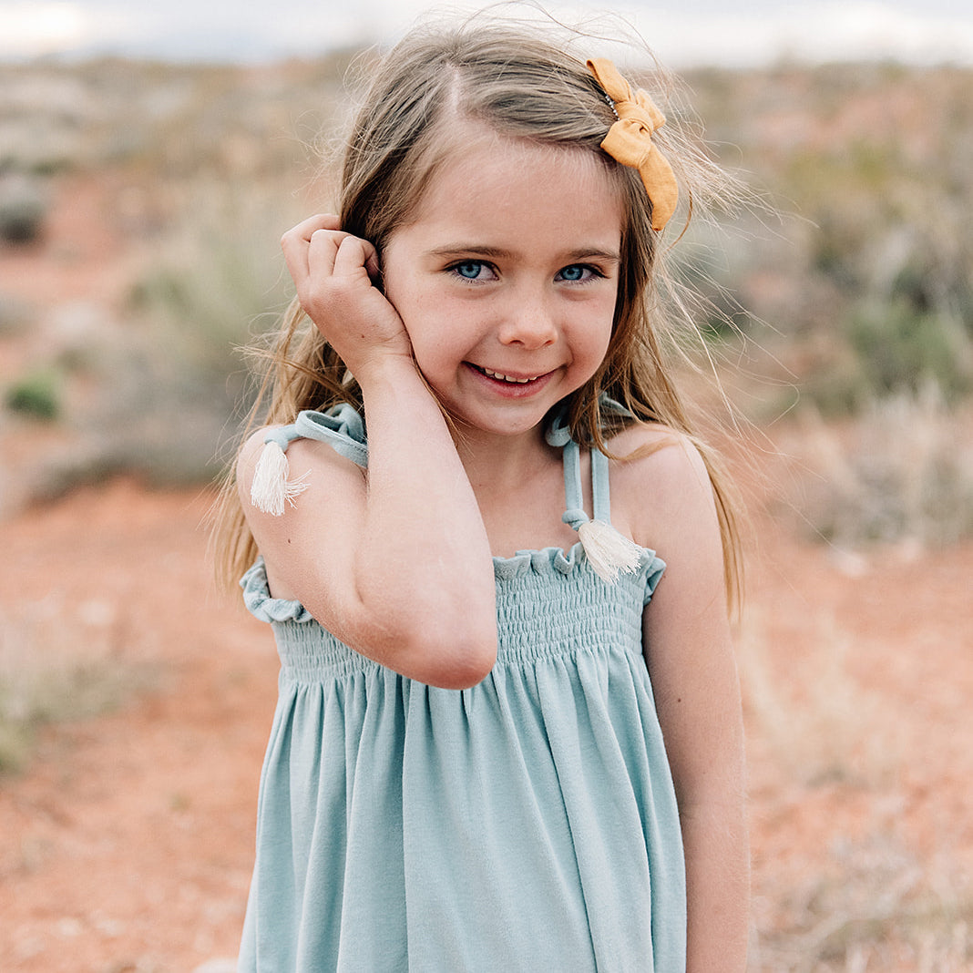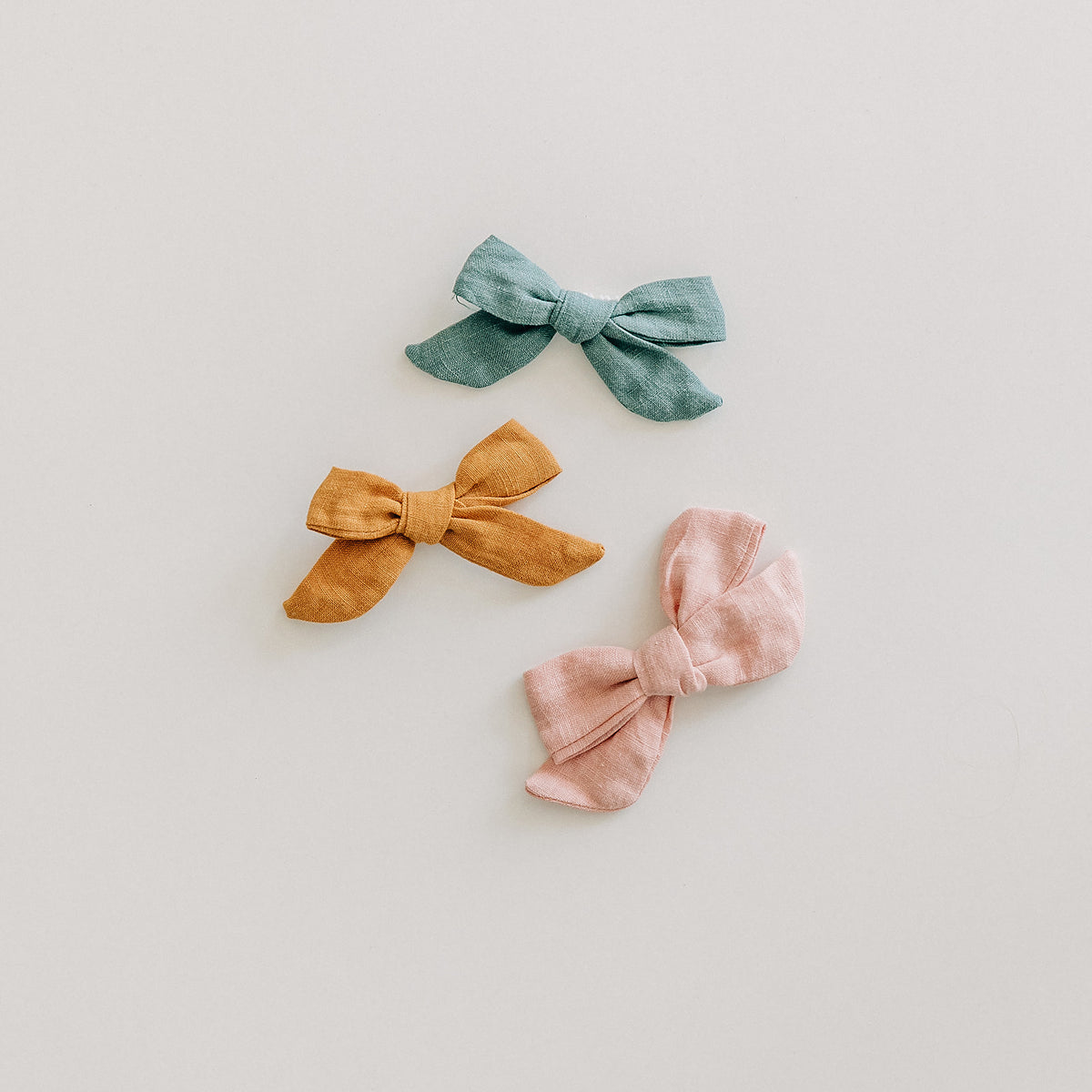Classic school girl bow hair clip in linen fabric on a no slip pinch clip.  Large Bow measures approximately 4" wide.  Available in many colors.  Fits infants to toddlers.  Designed and made in Minnesota. This is a Final Sale item. No exchanges or returns.