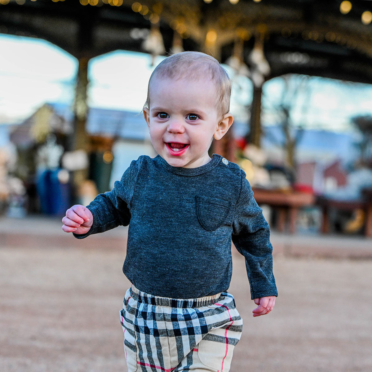 oh baby! Honeycomb Pocket Long Sleeve Onesie - Midnight