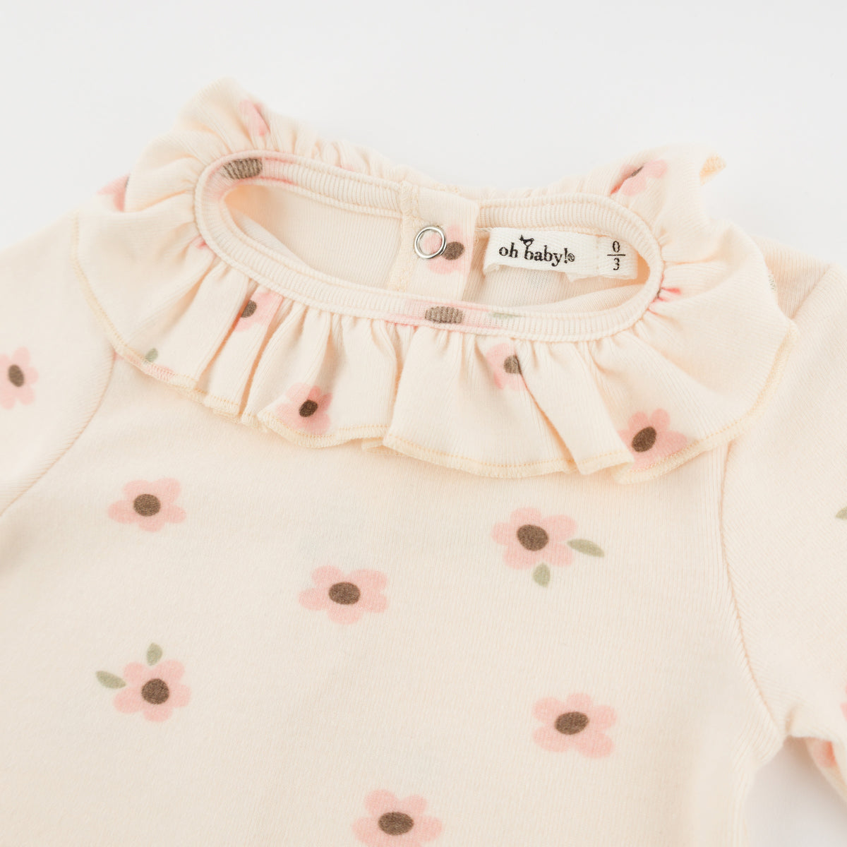 oh baby! Ruffle Neck Onesie - Daisies - Natural