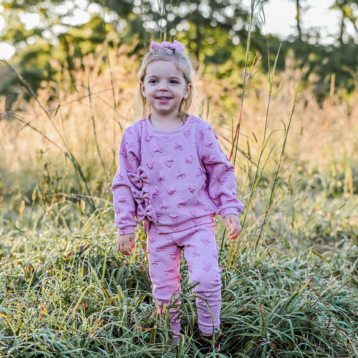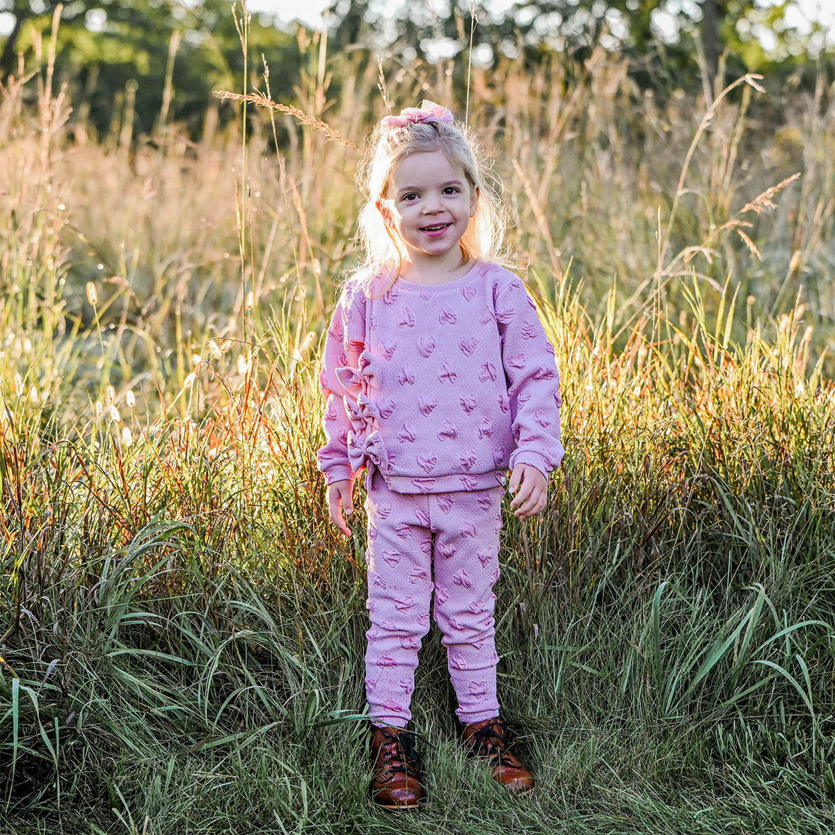 These oh baby! Pucker Hearts Leggings in Blush combine comfort and style with adorable textured pucker heart details. Featuring a cozy elastic waistband, they offer a perfect fit for infants, toddlers, and girls. Designed in Minnesota.