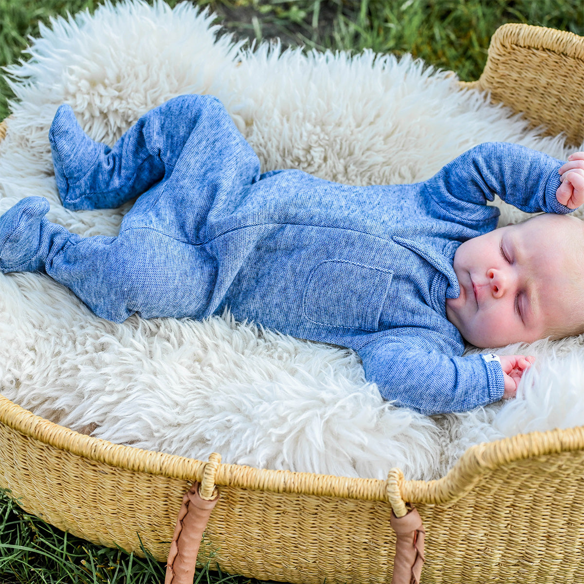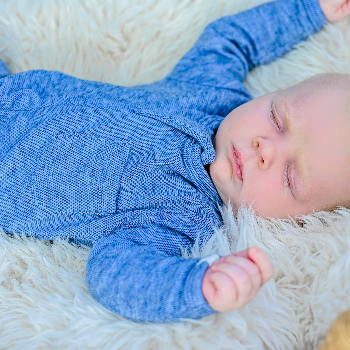 oh baby! Honeycomb Zipper Footie with Pocket - Denim