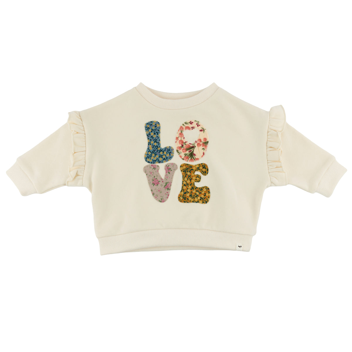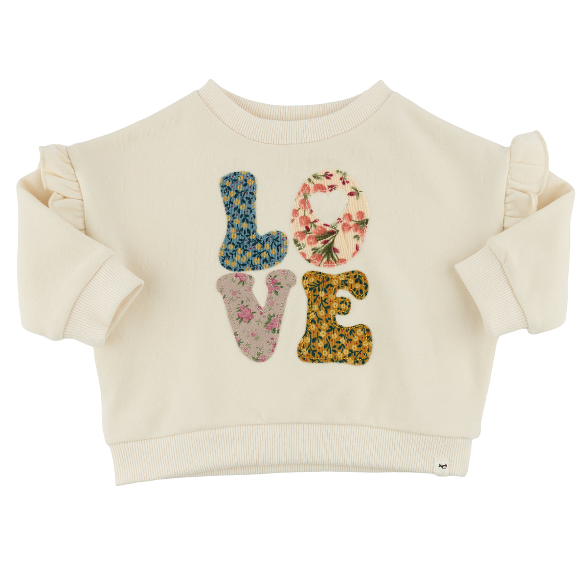 oh baby! Ruffle Slouch Sweatshirt - Stacked Floral LOVE - Natural