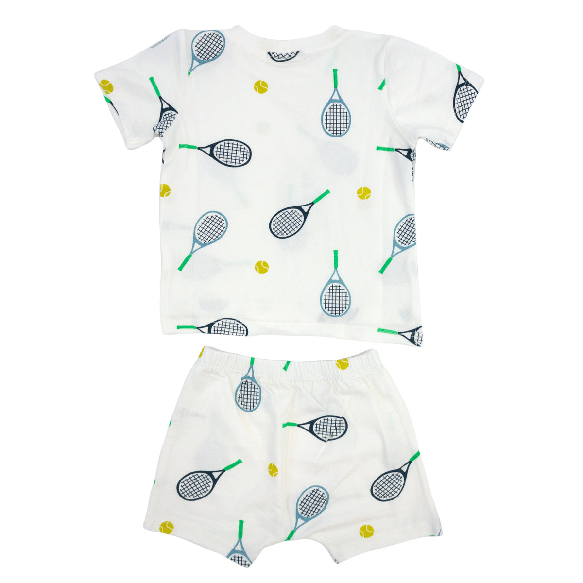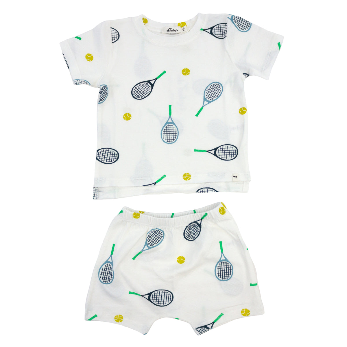 oh baby! Raw Edge Tee and Shorts Set - Tennis Print - Oyster